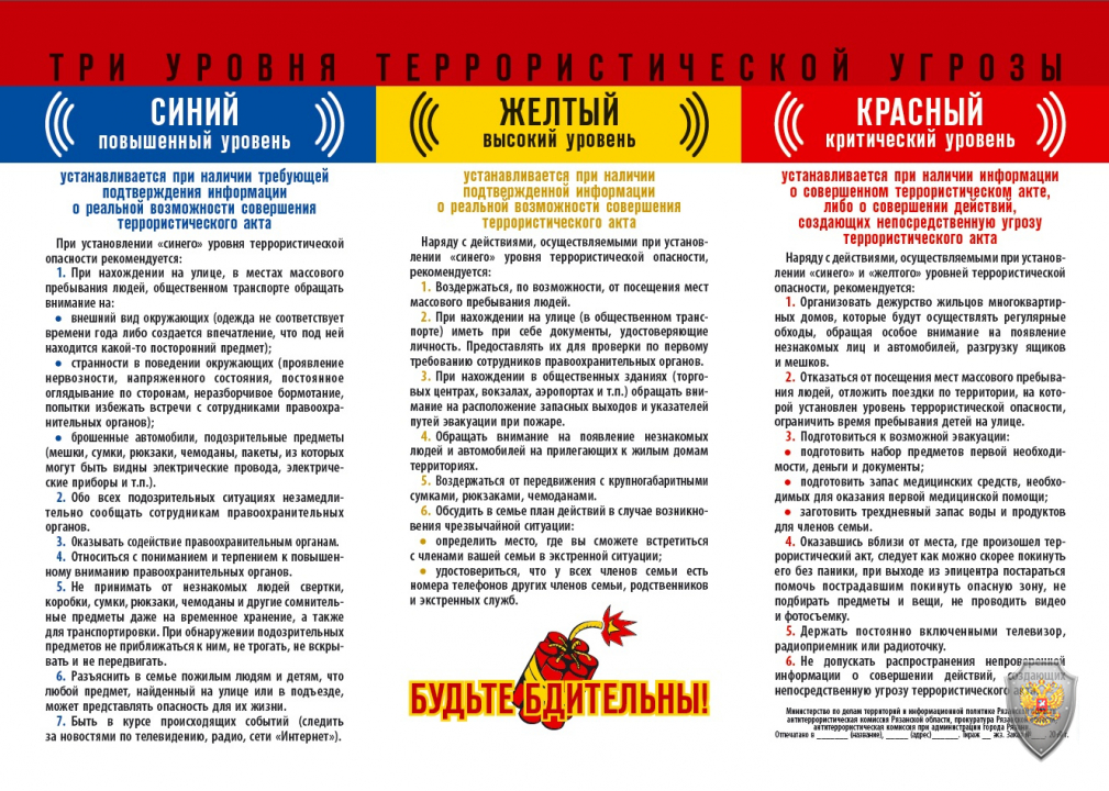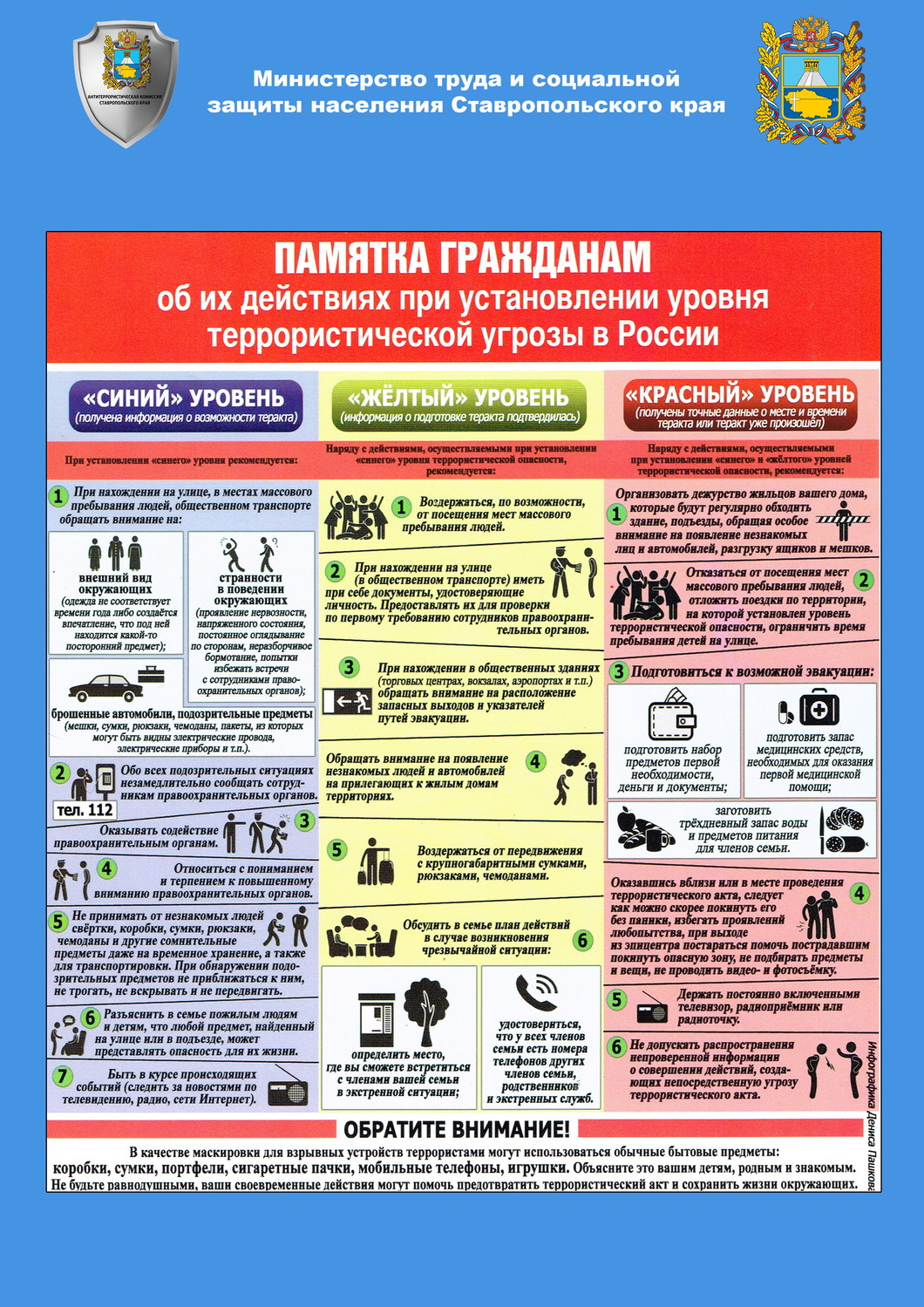 Памятка гражданам по действиям при установлении уровнейтеррористической опасности