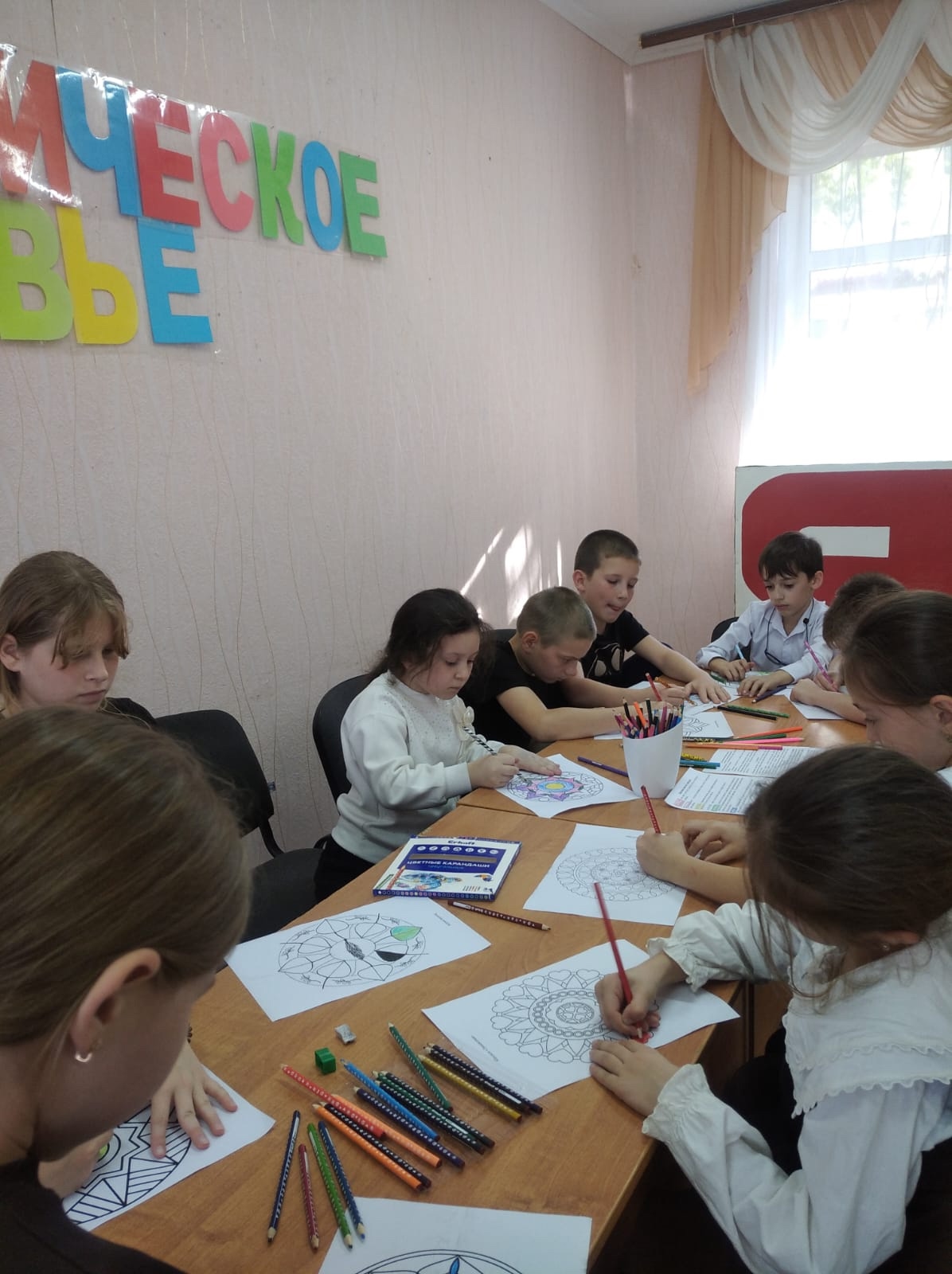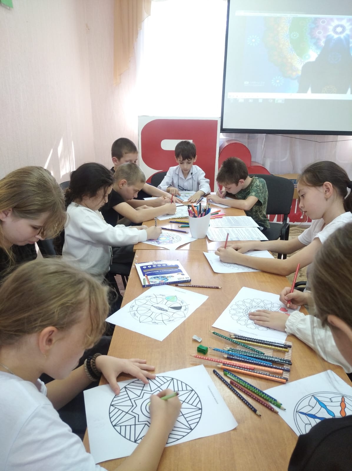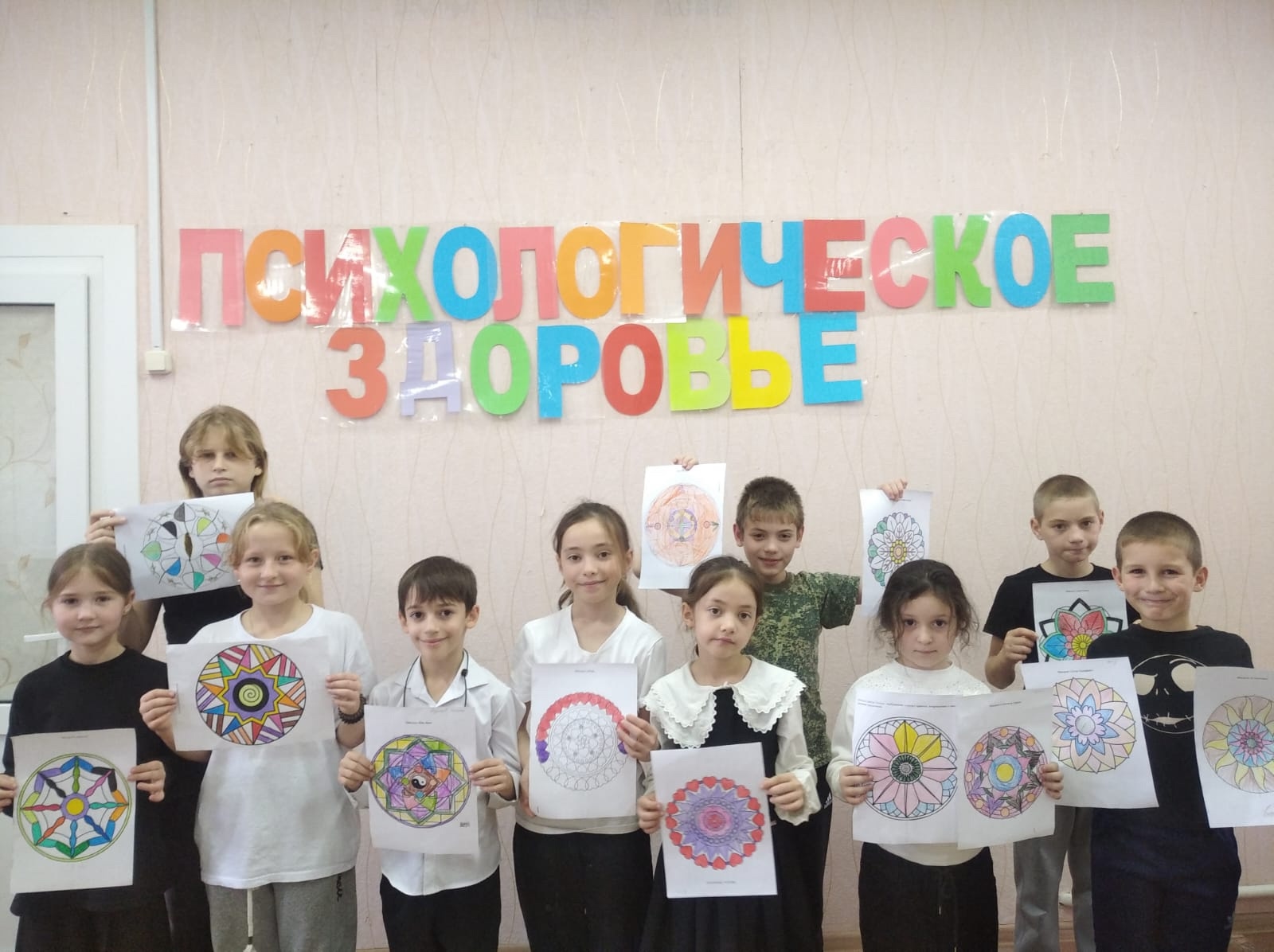 На занятии воспитанники познакомились с историей происхождения «Дня психологического здоровья». Узнали, как эмоции человека влияют на физическое здоровье: гнев — бьет по сердцу, беспокойство и тревога – вредят желудку, стресс – поражает мозг и сердце, страх давит на почки. Ребята выполнили психологическую зарядку, для активизации работы. Познакомились со способами снятия психоэмоционального напряжения. Во время практической части воспитанники освоили технику мандалотерапия. Просмотрев видео ролик «Что такое Мандала?» и «Мандала медитация благодарности вселенной», узнали об истории появления Мандалы и о техниках медитации. Мандала (изображение в круге) – универсальный символ, известный во все времена и во всех культурах мира. Мандала как вид искусства впервые появилась в буддийском искусстве, которое производилось в Индии в первом веке до н.э. Их также можно увидеть в рисунках ранголи в индийских семьях. Метод Мандалы относится к одной из арт-терапевтических техник, используется как средство самопознания, снятия эмоционального напряжения, развития воображения, фантазии, мелкой моторики рук. Изображение в круге, обладающее глубоким символическим значением, это один из древнейших способов взаимодействия человека с его внутренним миром. На самом деле это настоящая модель Вселенной, своеобразная энергетическая матрица, имеющая глубокий смысл. Так же ребята посмотрели видео-ролик «Стресс» из Ералаша и узнали о разных способах снятия негативных эмоций.