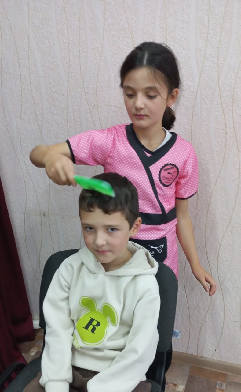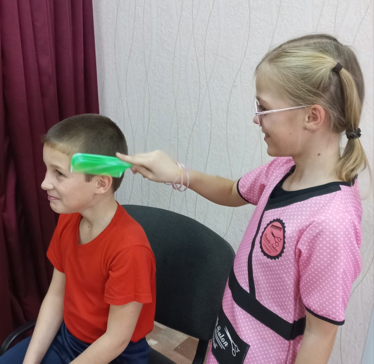 После физминутки, участники разыграли сценку «В парикмахерской» примерив на себя роль парикмахера или модели. Воспитанники приходя салон, здоровались, мастер предлагал им присесть в кресло, выслушивал их пожелания по поводу прически.