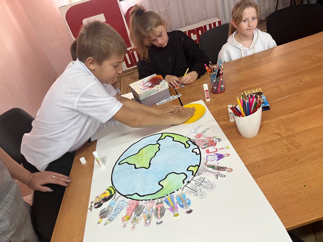 Во время упражнения «Цветок толерантности» воспитанники подбирали карточки с подходящими качествами толерантной личности и приклеивали на лепестки ромашки. Подбирали синонимы к слову «толерантность», читали стихи. В игре «Доскажи словечко» подбирали подходящие по смыслу вежливые слова. Во время разминки «Приветствие разных народов» дети узнали, что в любой стране в культуре общения, при встрече первое и самое главное – это приветствие. Сказать «здравствуйте» – это значит пожелать другому человеку крепости, выносливости, благополучия и здоровья. В России — с давних пор люди при встречи желают друг другу здоровья и обмениваются дружеским рукопожатием. На Тибете высунутый язык является жестом приветствия. В Таиланде люди при встрече говорят друг другу «вай» прикладывая сложенные вместе ладони к голове или груди. Причем, чем важнее человек, с которым здороваются, тем выше поднимаются ладони, и тем дольше длится «вай». В Индии — в знак приветствия принято складывать ладошки вместе и уважительно прижимают их к груди. В Замбези – хлопают в ладоши, приседая. Жители Полионезии – трутся носами и гладят друг друга по спине. Выполняя упражнение-разминку, ребята зарядились позитивными эмоциями. Во время творческой работы «Засели планету» мальчишки и девчонки раскрашивали человечков разных народов и заселяли земной шар. В завершении занятия, передавая клубок ниток друг другу, пожелали всем детям на земле: мира, здоровья, счастья, жить в семье с родителями, быть добрыми и смелыми.