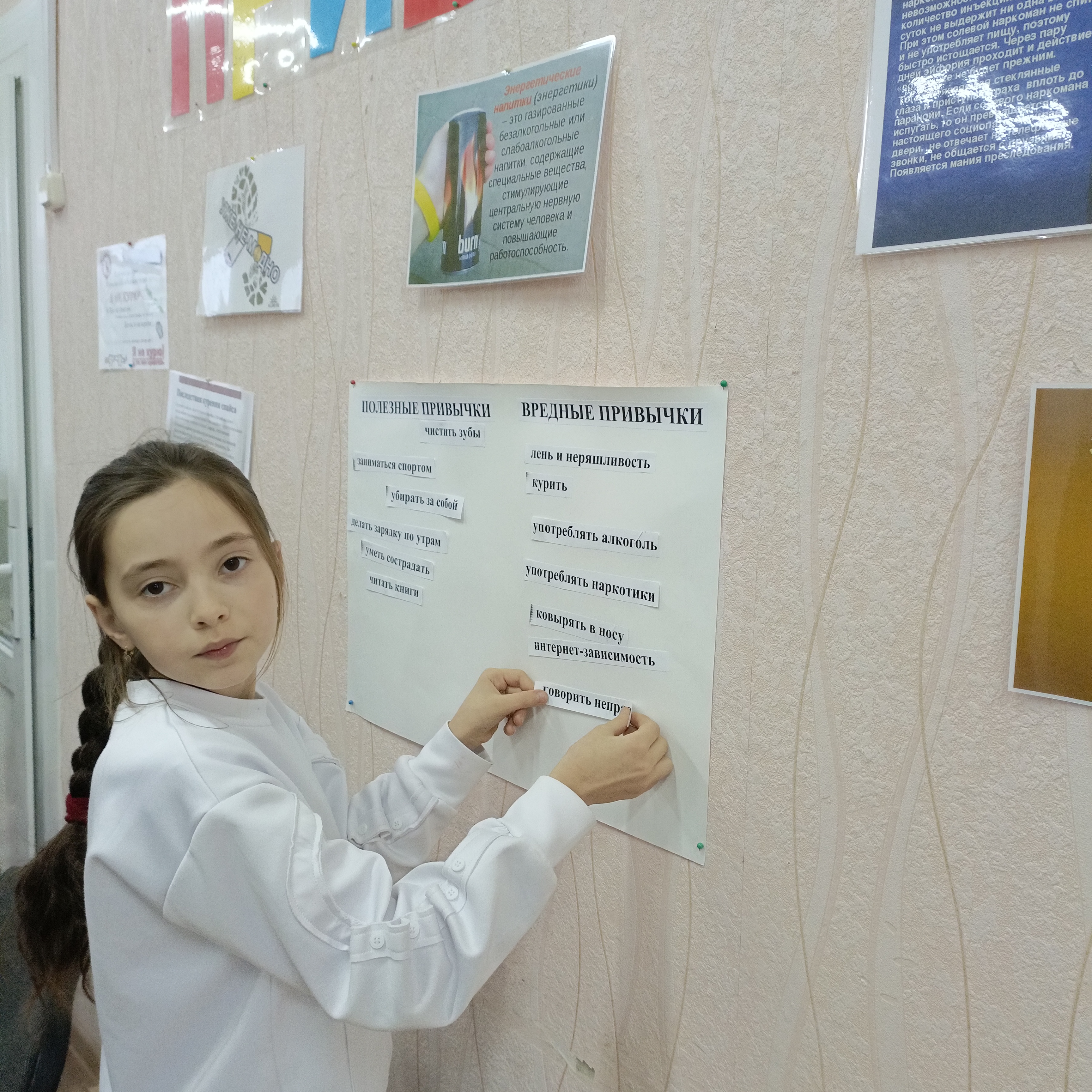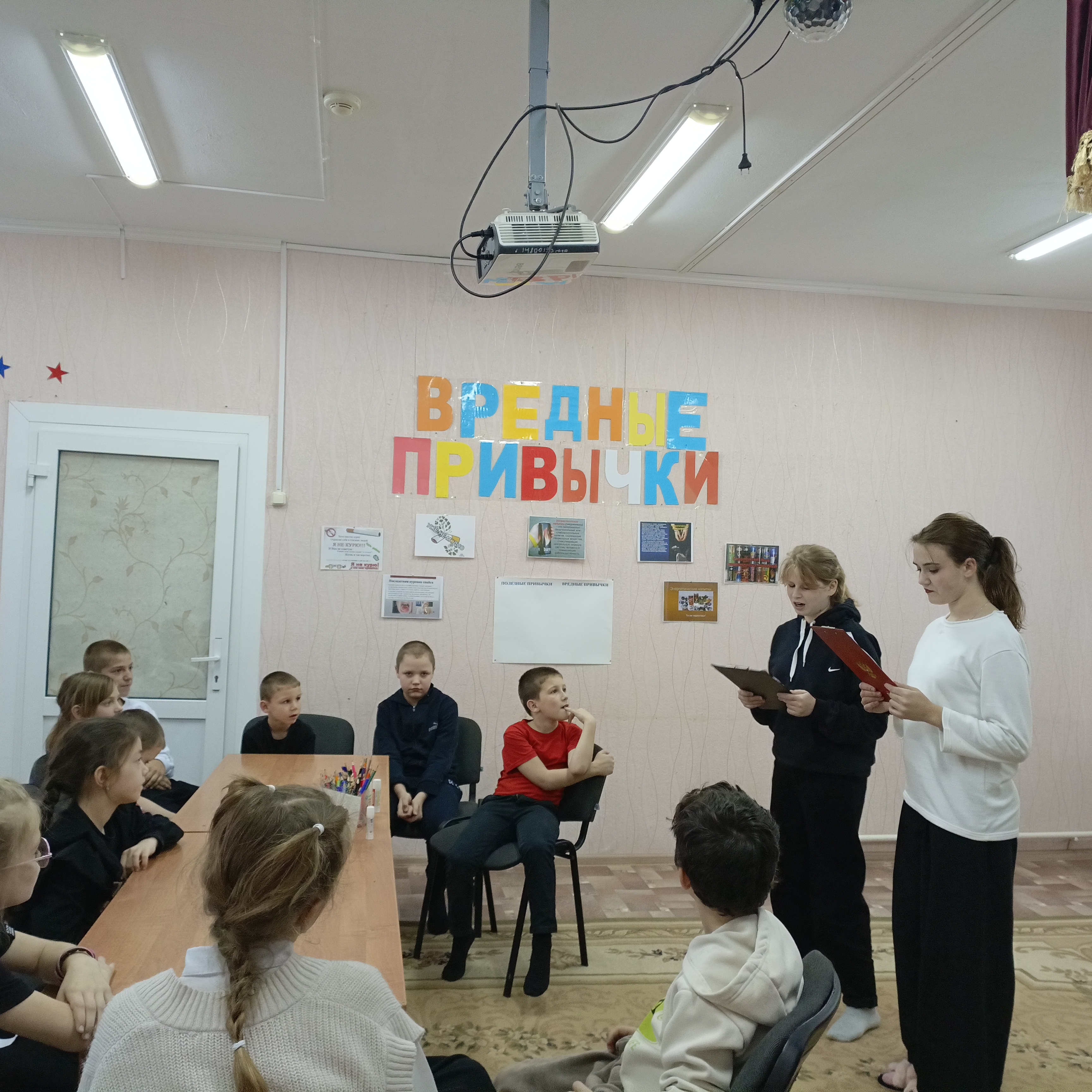В ГКУСО «Андроповский СРЦН» с несовершеннолетними было проведено профилактическое мероприятие на тему: «Вредные привычки». В начале занятия ребята обсудили, что означает сам термин «вредная привычка» и какие вредные привычки существуют. Узнали о вредных последствиях курения, алкоголя, употребления энергетиков, наркотиков, игромании для здоровья человека. Привычка – это поведение, ставшее в жизни обычным и постоянным. Привычки бывают полезными и вредными. Каждый человек – сам творец своего здоровья, и поэтому очень важно с раннего возраста правильно питаться, заниматься физкультурой, закаляться и соблюдать правила личной гигиены. Ребята прослушали стихотворение о привычках, отгадывали загадки. Карточки с привычками разделили на две колонки: «полезные – вредные», приклеив их на плакат. Сыграли в игру «Полезно-вредно». Во время творческого задания мальчишки и девчонки раскрасили дерево и наклеили яблоки. Яблоки с гусеницей – это вредные привычки, а целые яблочки – это полезные привычки.