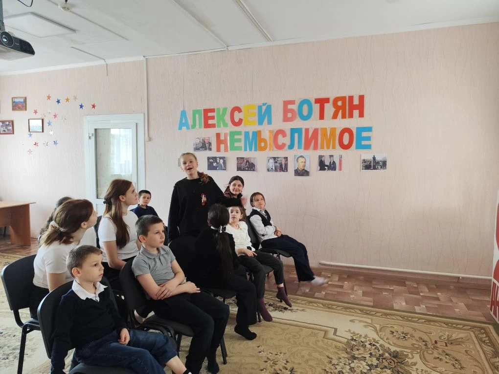 В зале стояла тишина, дети, затаив дыхание, следили за судьбой человека-легенды. Алексей Николаевич Ботян — не просто имя из учебника, а живой пример несгибаемой воли, мужества и беззаветной любви к Родине.